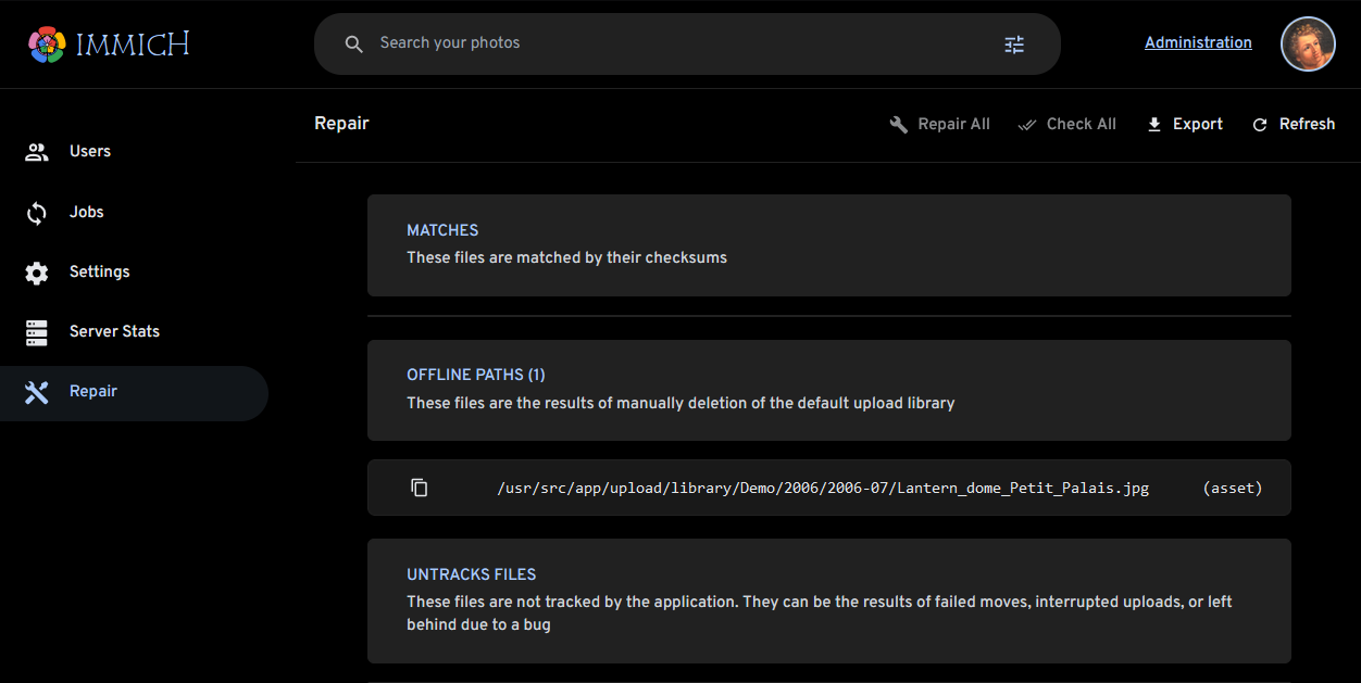 OFFLINE PATHS - These files are the result of manually deleting files from immich or a failed file move in the past (losing track of a file).